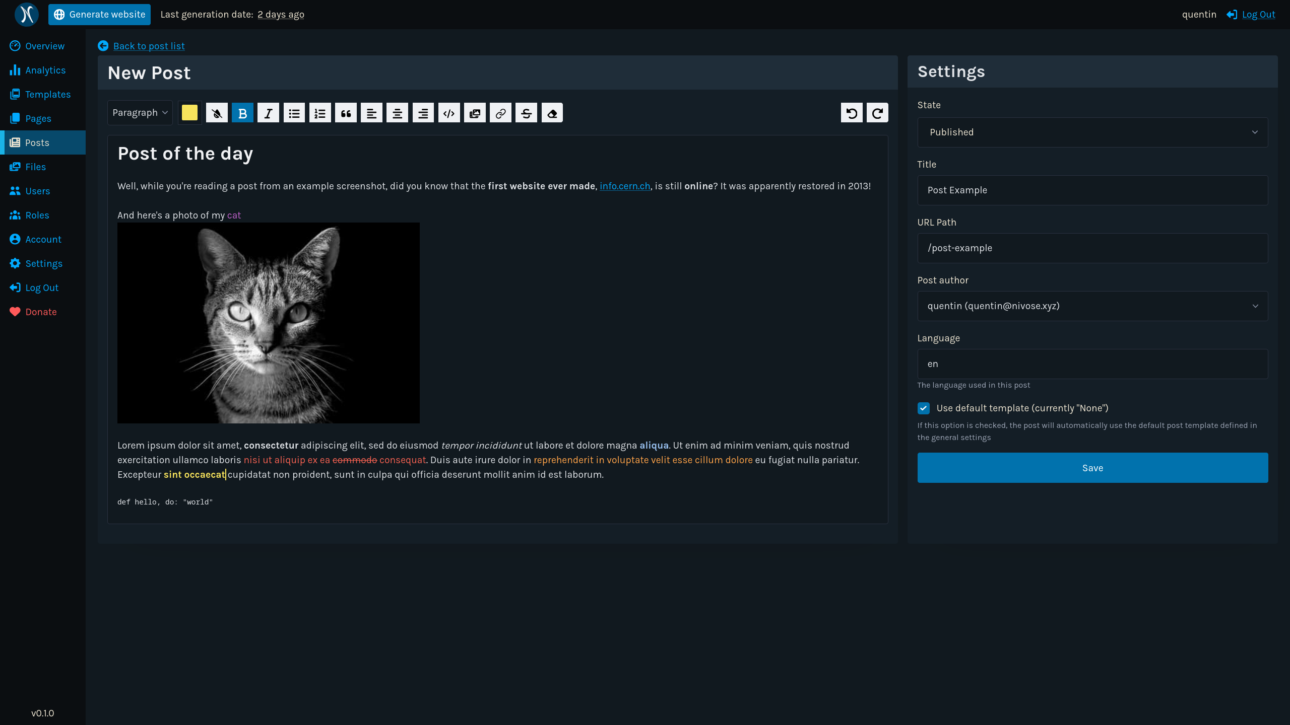 Nivose offers the effectiveness of a static website generator in a modern Web UI.